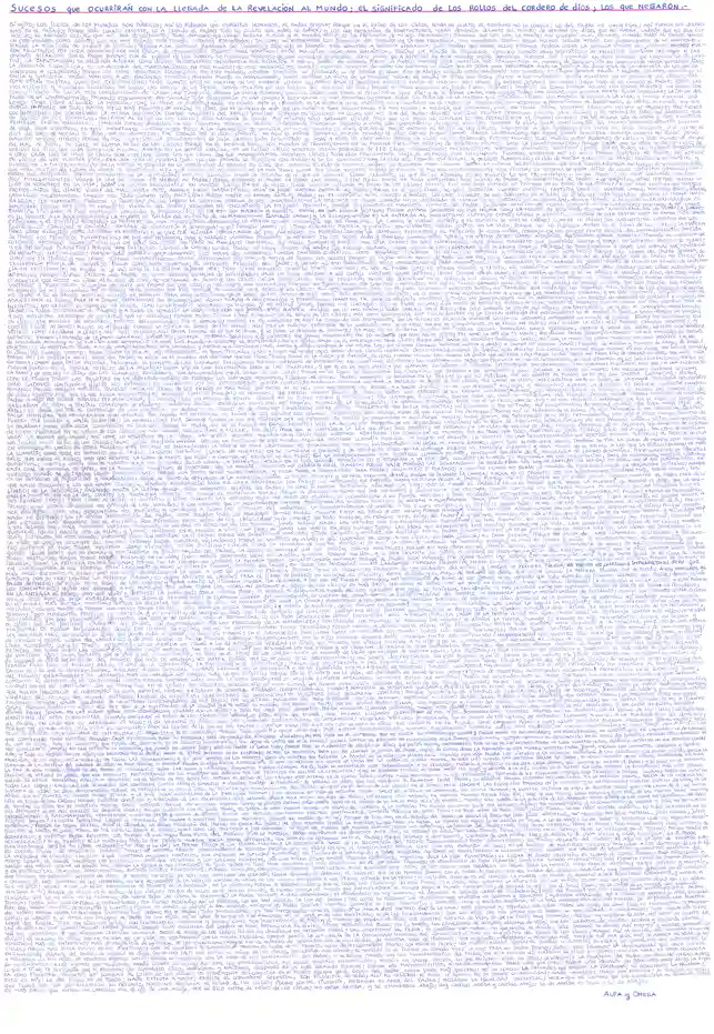 la causa que la cubría el olvido mental, se hace luz; cuando una doctrina salida del Padre, se hace presente en un mundo, se extiende por toda la faz de ese mundo; porque lo del Padre es universal; todas las cosas y criaturas pensantes, fueron creadas por él; toda la naturaleza está subordinada a su Creador; materia y espíritu; es por esta causa divina, que siempre se impone el Padre; y lo hace en el momento preciso; de verdad os digo, que ese momento fué atrasado por los egoístas que pidieron ser los primeros en recibir la Revelación; y nó la quisieron recibir; el Padre varió las leyes y siempre a la vez, ocurre en el tiempo que debe ocurrir la Revelación; más este atraso salido de estos egoístas, afecta a vosotros en el tiempo en que deberíais entrar al Reino de los Cielos; este atraso es de cuatro años; cuatro años que anduvo mi Hijo Primogénito, tratando de ser escuchado; porque toda Trinidad se impone pruebas; puesto que está en todas las cosas; calculad los segundos que contienen cuatro años; y sumadlo a vuestro puntaje de tinieblas; de verdad os digo, que los egoístas al rechazar lo del Padre, lo hicieron porque estaban influenciados por la extraña moral, salida de un desconocido sistema de vida; se dice desconocido, porque el explotarse el uno al otro, nó está en los Mandamientos del Padre; ni está en el Reino de los Cielos; en el Reino, no se conocen las filosofías basadas en la ambición y la explotación; vuestro sistema de vida, es un árbol que nó plantó el divino Padre Jehova; y de raíz será arrancado de la evolución humana; este sistema de vida de extraña moral, salió de un grupo de demonios, con forma humana; y vuestro sistema de vida, es vuestro propio yugo; por causa de él, nó entraréis al Reino de los Cielos; porque fuísteis divididos y apartados de las escrituras; sólo satanás divide para alejar los hijos del Padre; nó exsiste otro satanás en vuestro mundo; porque todo mal, sale de las mismas ideas malas; y todo bién, de las mismas ideas buenas; de verdad os digo, que de vosotros mismos salió satanás; porque con vuestras propias ideas, le dísteis forma; nada sabéis como es el orígen de lo malo; más allá de vuestro mundo; sólo sabéis de la rebelión de los ángeles; nada sabéis de las cosas que ocurrieron, en todos sus detalles; lo que allí ocurrió lo sabréis ahora; porque pedísteis con el juicio final, el saber de como fueron hechas las cosas; del espíritu y la materia; tal pedido se llama juicio por Intelectualidad; por entendimiento y razonamiento; de verdad os digo, que por vuestro entendimiento y razonamiento, comenzará vuestro crujir y llorar de dientes; porque las virtudes que forman vuestros sentimientos, también pidieron el juicio final; el todo sobre el todo pidió juicio final; lo que pidió vuestro espíritu, lo pidió la materia en sus propias leyes; exsisten infinitas leyes y procesos, que escapa a vuestros poderes mentales; hechos que vuestro ojo nó vé; porque de todo hay en el rebaño del Padre; de verdad os digo, que todo juicio intelectual, vá precedido por juicio material, juicio mental, juicio espíritual; porque en todas partes, está el Creador; la divina psicología del Padre, es propia del Padre; tal como vosotros tenéis la vuestra; lo  que tiene el Padre, lo tienen los hijos; lo de arriba es igual a lo de abajo; lo del Padre es infinito; lo de los hijos, microscópico; por lo tanto, el juicio final es tal como lo desea el Padre; y nó como les gustaría a los hombres; sé hijos del mundo, que muchos claman hasta las lágrimas, la justicia del Padre; más, todo hecho terrenal, tiene su tiempo; todo hecho viviente pidió su tiempo de desarrollo; y vuestro Padre respeta los pedidos de sus hijos; sean éstos del espíritu ó de la materia; todos son iguales en derechos ante dios; de verdad os digo, que todo tiempo tiene su tiempo en el tiempo; tiene la Trinidad en el tiempo; porque nadie es desheredado; ni el espíritu ni la materia; todo lo que exsiste aunque tenga forma diferente, son iguales en derechos ante el Padre; porque iguales y desiguales, salieron de una misma ley; el atributo de cada virtud y cada molécula, es el poder manifestarse según su libre albedrío; se pide y se dá; la forma física y la forma mental; la geometría nace de la geometría del propio conocimiento; todo conocimiento es físico delante del Padre; he aquí el orígen de vuestro futuro cuerpo físico; de vosotros mismos sale; de vuestro propio conocimiento; de vuestra propia sal de la vida; porque el conocimiento brilla como una sal expuesta al sol; es un brillo de múltiples colores parecidos a los destellos de un rubí; la variedad de colores obedece a que vuestras acciones mentales, son variadas en cualidad y calidad; en filosofía y jerarquía; y todas vuestras acciones se transforman a colores; estos colores son salidos de vosotros; y vosotros salísteis del mismo lugar, de donde salieron los colores; es decir que vosotros y los colores mentales, son una misma cosa; ambos poseen identidad, mientras dura la vida planetaria; el lugar de donde salísteis, es lugar de tiempo eterno; toda psicología a salido del mismo lugar en donde fué creada la Tierra y sus criaturas; el todo sobre el todo tiene desarrollo; este desarrollo es el que estáis pasando; el desarrollo de todo planeta, comienza siendo microscópico; todo planeta crece en forma progresiva y en espiral; las criaturas como vosotros, también fuísteis microscópicas; fuísteis humildes, chiquititos, microbios, para llegar a ser grandes en el Reino de los Cielos; esta parábola es igual para la materia como para el espíritu; porque espíritu y materia, son iguales en derechos delante de dios; de verdad os digo, que sólo los humildes de corazón, tienen ganado el derecho; el derecho que se os mandó ganar con el sudor de frente; porque fuera del derecho celestial, hay infinitos derechos en su cualidad y calidad; el más supremo de los derecho